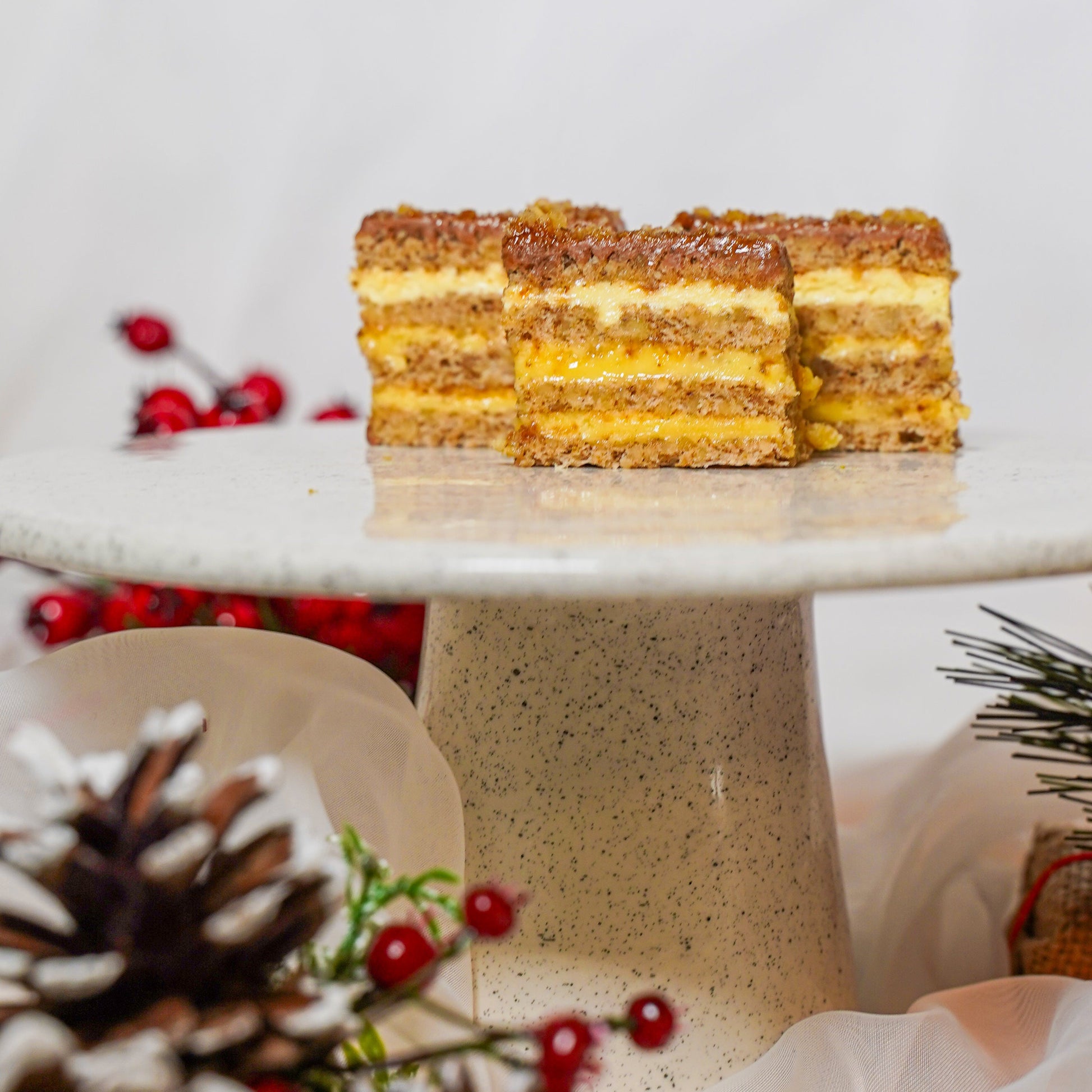 Foi fine cu nucă rumenită și cremă catifelată de vanilie, îmbogățită cu pastă pură de vanilie de înaltă calitate. Gustul delicat al cremei este completat perfect de textura crocantă a nucilor caramelizate, oferind un echilibru elegant între dulceață, aromă și finețe artizanală. Un desert clasic reinterpretat cu ingrediente premium și atenție la detaliu.